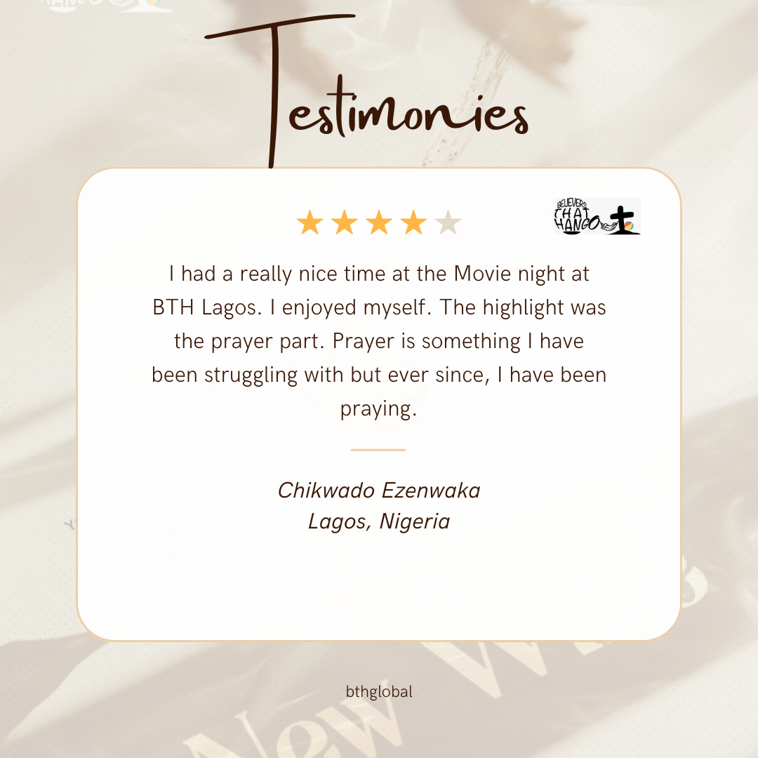 Never forsake the assembling together of God’s people. For example, BTH 😉. There is something about seeing others fervent for God that sparks fervency in you, the words spoken over you births life. Don’t joke with it. (Hebrews 10:24-25)