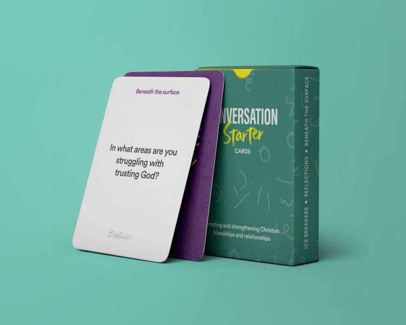 The Conversation Starter cards are intentionally designed to foster, create, strengthen Christian friendships and relationships. Use this for your community, church, cell meetings or fellowships.