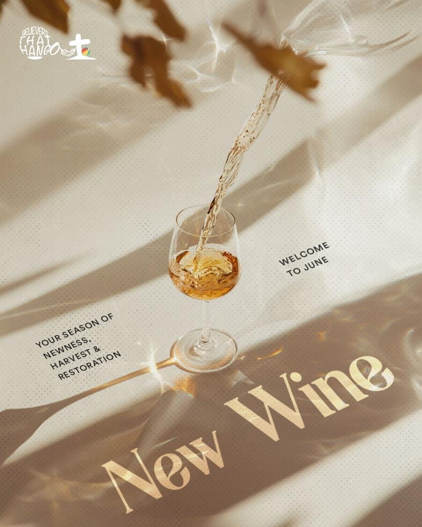 New wine requires New wine skins. Last month we were told “behold old things have passed away and all things have become new”. What are the old things that you must let go of to make room for the Newness and Freshness that has now come? Remember, you’re not praying for New wine, but you’re making your skins new to accommodate the new wine. You’re preparing to receive the harvest.