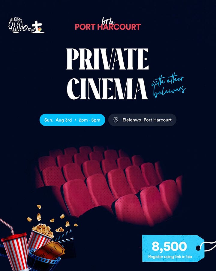 We're having a Private Cinema Viewing Hangout — a cozy time to unwind, connect, and be refreshed.